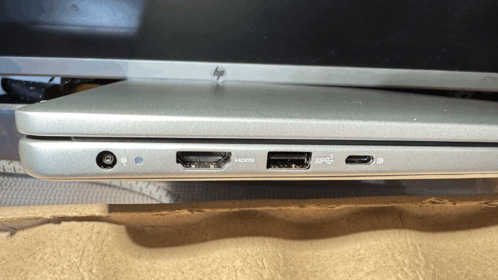 左側↓(左から 電源ジャック、HDMIポート-フルサイズ-、USB-A 5Gbps USB 3.2 Gen1-、USB-C-USB TypeC/DisplayPort対応-)