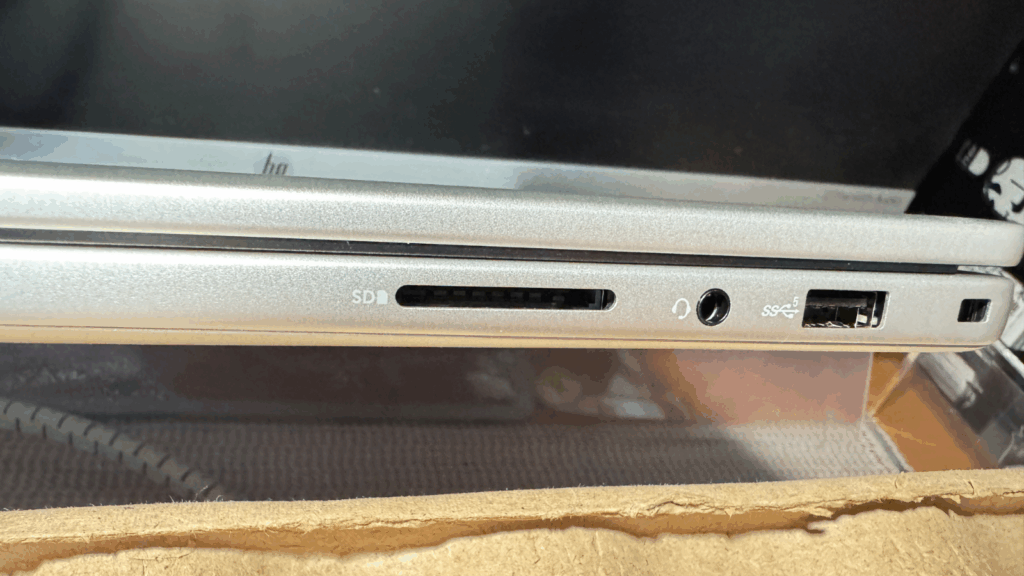 右側↓(左から SDカードスロット-フルサイズ、オーディオジャック、USB A-5Gbps USB3.2 Gen 1/ USB 3.0-)